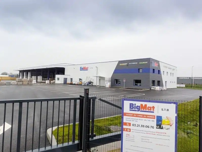 BigMat STB Aire sur la Lys franchit une nouvelle étape de son développement en changeant d’adresse et en s’installant dans un environnement plus vaste, plus moderne et parfaitement adapté aux besoins de sa clientèle après cinq journées de déménagement du 15 au 20 décembre 2025. Historiquement implantée au Boulevard Foch, l’enseigne a désormais pris place à quelques kilomètres de la, dans la zone du Parc Saint Martin, au 6 rue de l’Argent à Aire sur la Lys. Ce déménagement marque une évolution importante pour le point de vente qui bénéficie aujourd’hui d’un site entièrement repensé afin d’offrir des conditions d’accueil, de stockage et de service encore plus performantes. La nouvelle parcelle sur laquelle est implanté BigMat STB Aire sur la Lys s’étend sur une superficie totale de 16 500 mètres carrés. Ce vaste espace permet une organisation optimale des différentes activités du négoce de matériaux. Le bâtiment commercial, d’une surface d’un peu moins de 800 mètres carrés, dispose d’une hauteur sous plafond de 8 mètres, offrant ainsi un volume confortable et fonctionnel. Le reste de la surface extérieure est consacré à l’aménagement d’une cour des matériaux spacieuse, pratique et accessible, facilitant les manœuvres, le chargement et le déchargement pour les professionnels comme pour les particuliers.