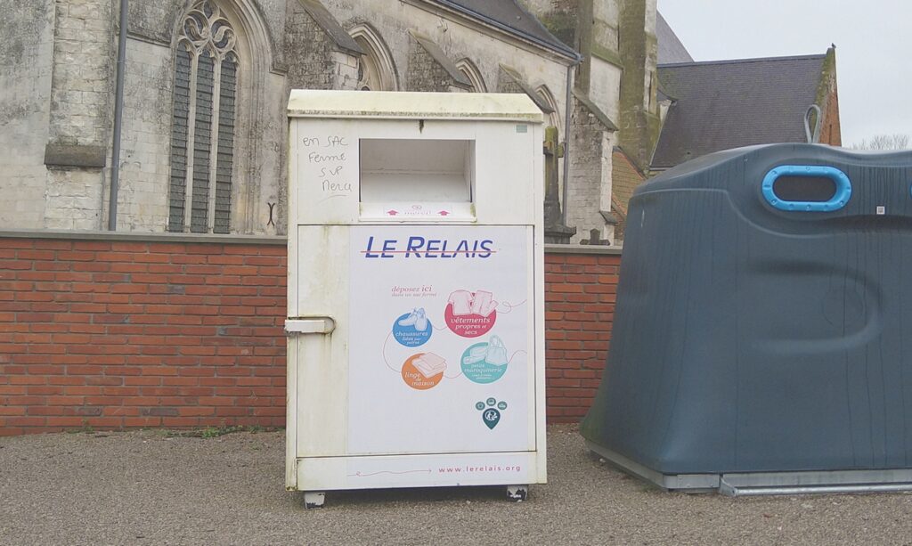 Cette borne est située sur le parking de L’église du village. Dépôt dans des sacs fermés de chaussures, de vêtements propres et secs, de linge de maison et de petite maroquinerie.