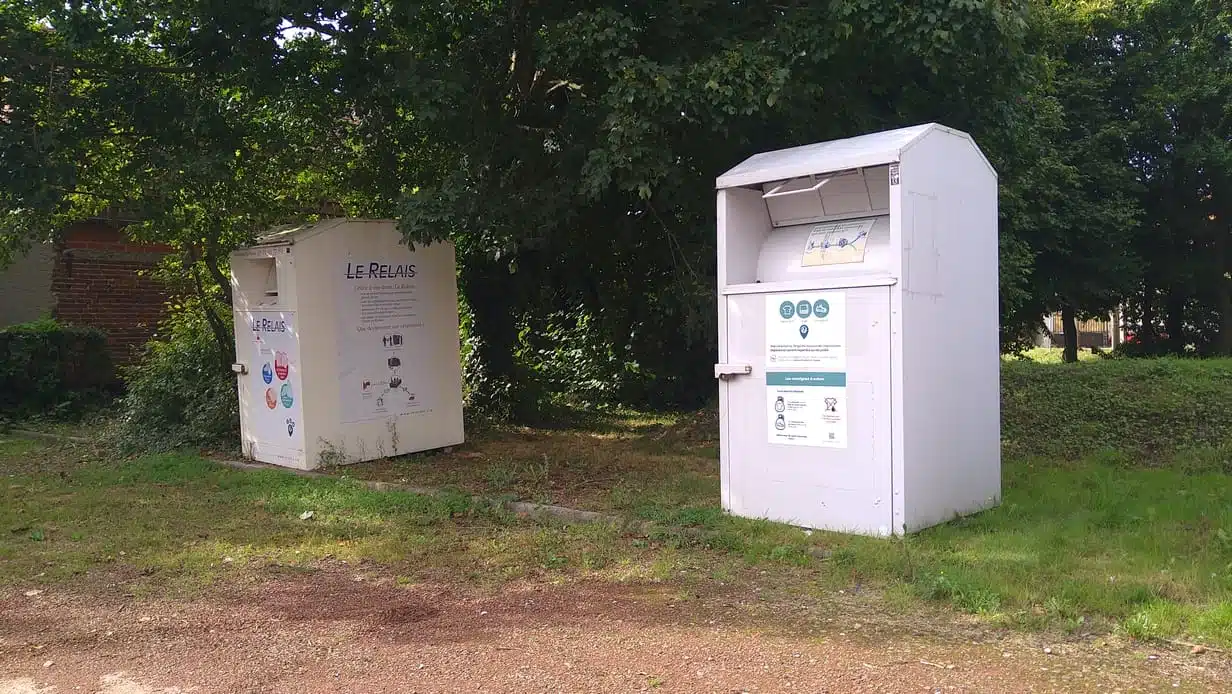 Ces bornes sont situées à côté de la salle des fêtes du village. Dépôt dans des sacs fermés de chaussures, de vêtements propres et secs, de linge de maison et de petite maroquinerie.